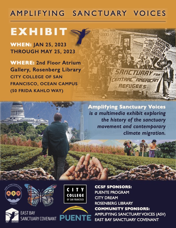SPONSORED BY: CCSF ROSENBERG LIBRARY, AMPLIFYING SANCTUARY VOICES (ASV), EAST BAY SANCTUARY COVENANT (EBSC), CCSF PUENTE PROGRAM, CCSF CITY DREAM